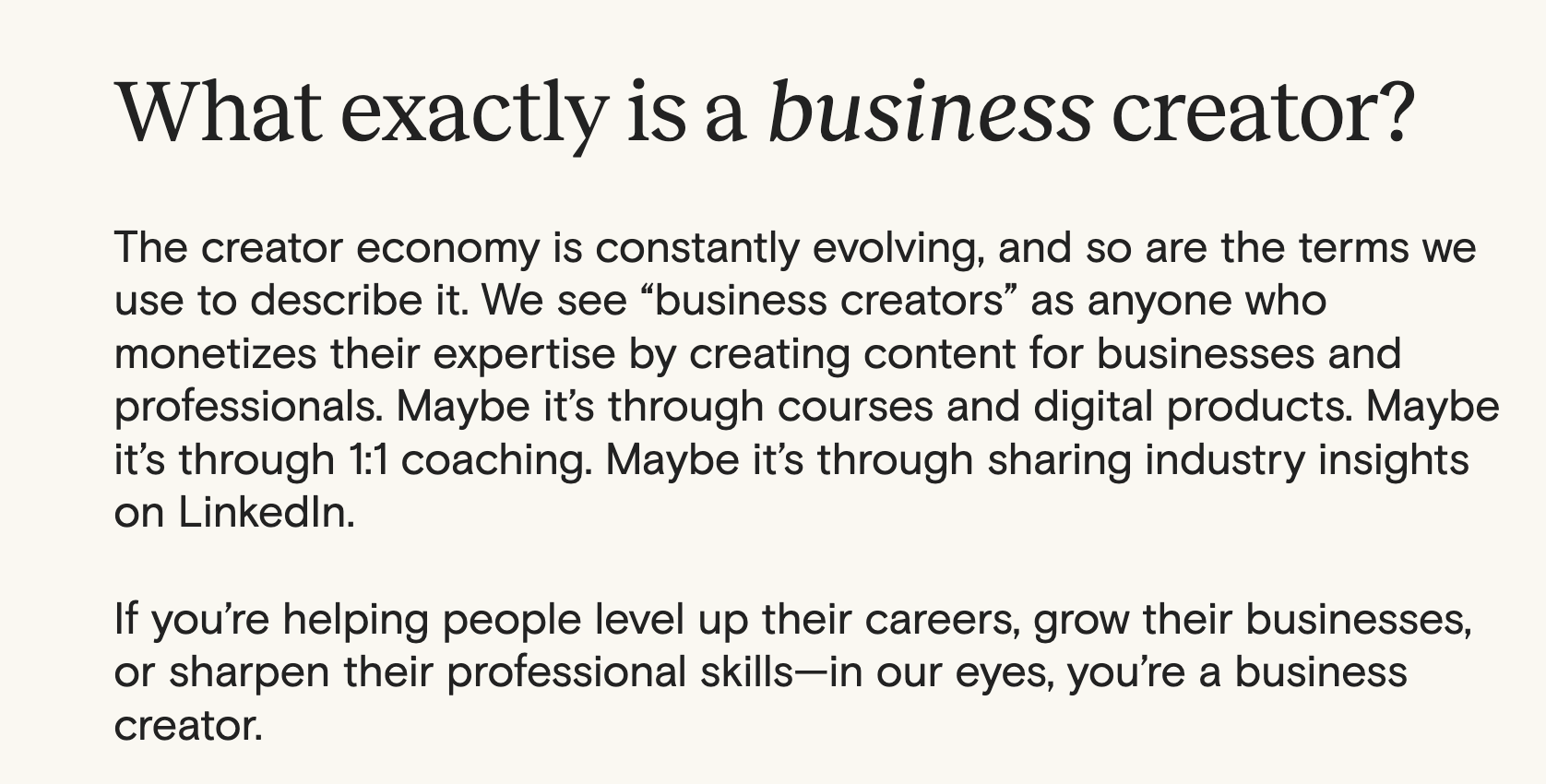 On their webpage, they provide this definition of a Business Creator 👇