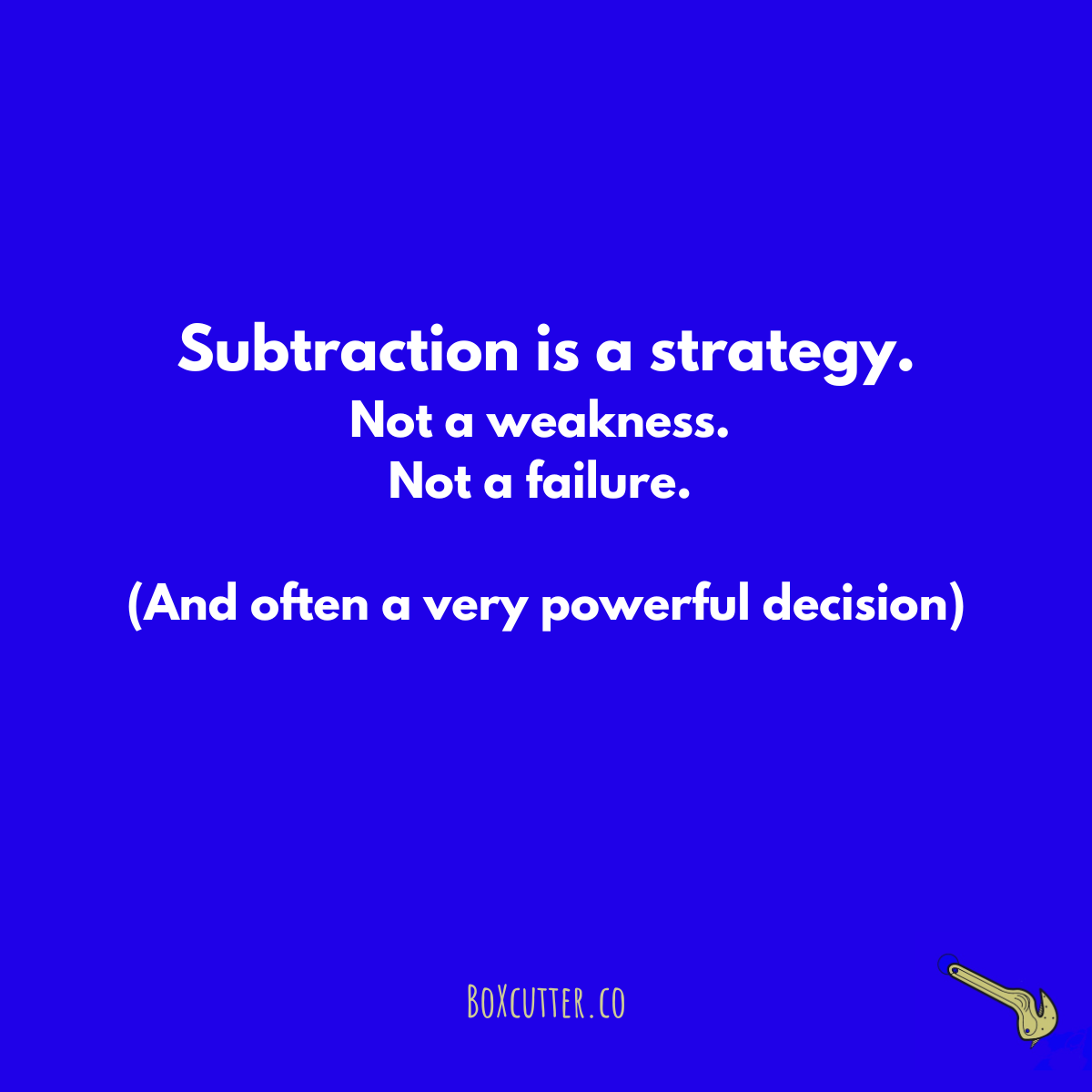 Strategy NOT driven by scarcity, but by self-awareness and subtraction