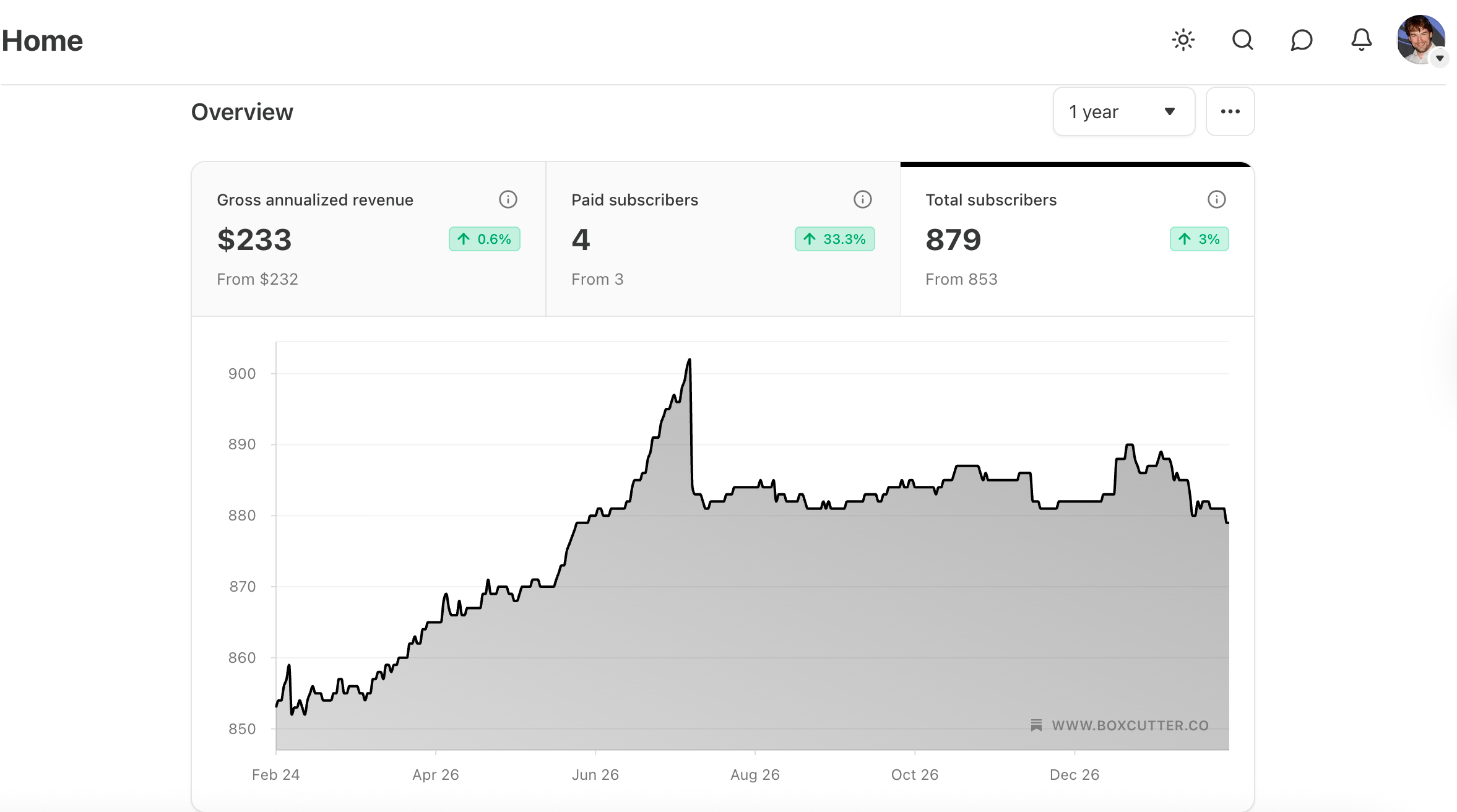 Sure, I published less between June and December 2025; however, in 2024, I sometimes had 30 new subscribers in a month.